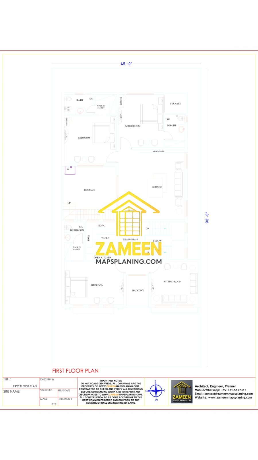 18 Marla (45′-0″X90′-0″) Spanish Colonial Revival Mediterranean Tropical Fusion Villa